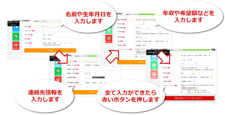 10秒簡易審査はモビット公式サイトの「カード申込」から必要情報を入力するだけで簡単に行えます。