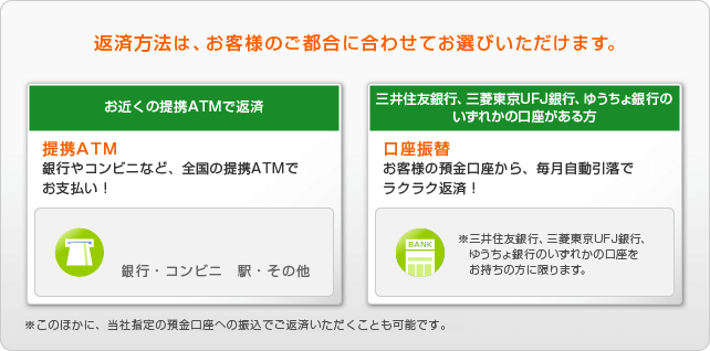 両者は自行ATMが無料で使えるのはもちろんですが、セブン、ローソン、ファミマなどのコンビニATMを24時間無料で借り入れ・返済ともに利用できる利便性は互角です。